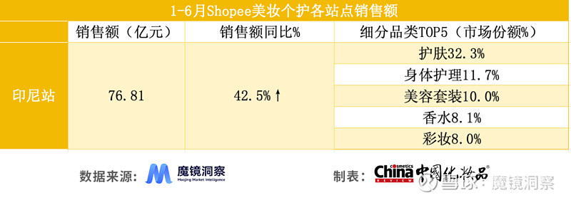 1月-6月,Shopee印尼站美容护理大类共实现销售额76.81亿元,同比增长42.5%。排名前五的细分类目及销售额分别是:护肤(24.63亿元)、身体护理(8.95亿元)、美容套装(7.65亿元)、香水(6.15亿元)、彩妆(6.09亿元)。上半年,美容套装类目销售额同比增长最多,达78.9%,其次是彩妆类目,同比增长63.5%。