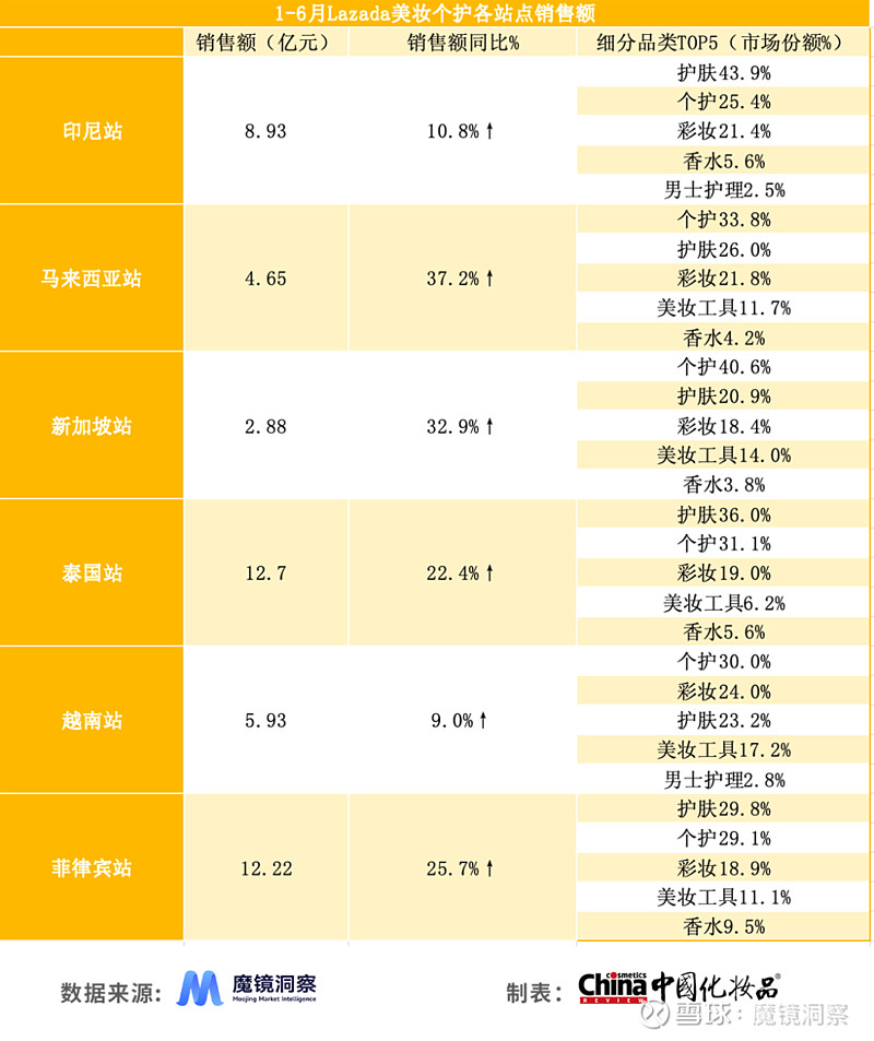 1月-6月,Lazada印尼站美妆护理大类共实现销售额8.93亿元,同比上涨10.8%。排名前六的细分类目及市场份额分别是:护肤(43.9%)、个护(25.4%)、彩妆(21.4%)、香水(5.6%)、男士护理(2.5%)、美妆工具(1.2%)。