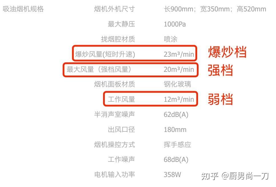 弱档风量对应的就是参数表中的工作风量,强档风量对应的就是参数表中的最大风量,爆炒档对应的就是爆炒风量。