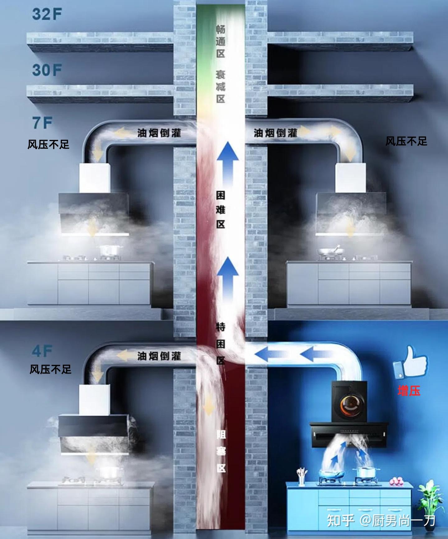 如果你是住的是走公共烟道的城市高楼,你所住的楼层越低,你需要的风压越大。