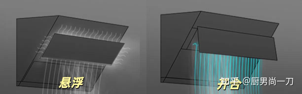 侧吸式之间的主要区别还是拢烟板,常见的拢烟板设计有:悬浮和开合两种。