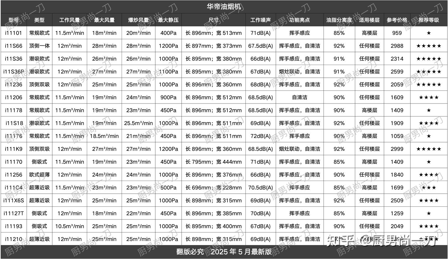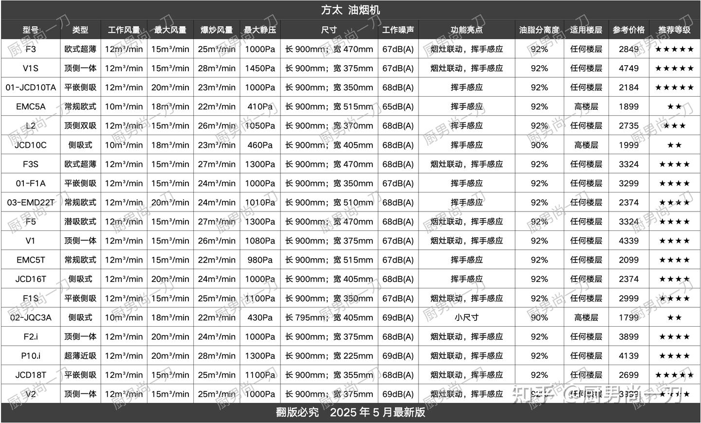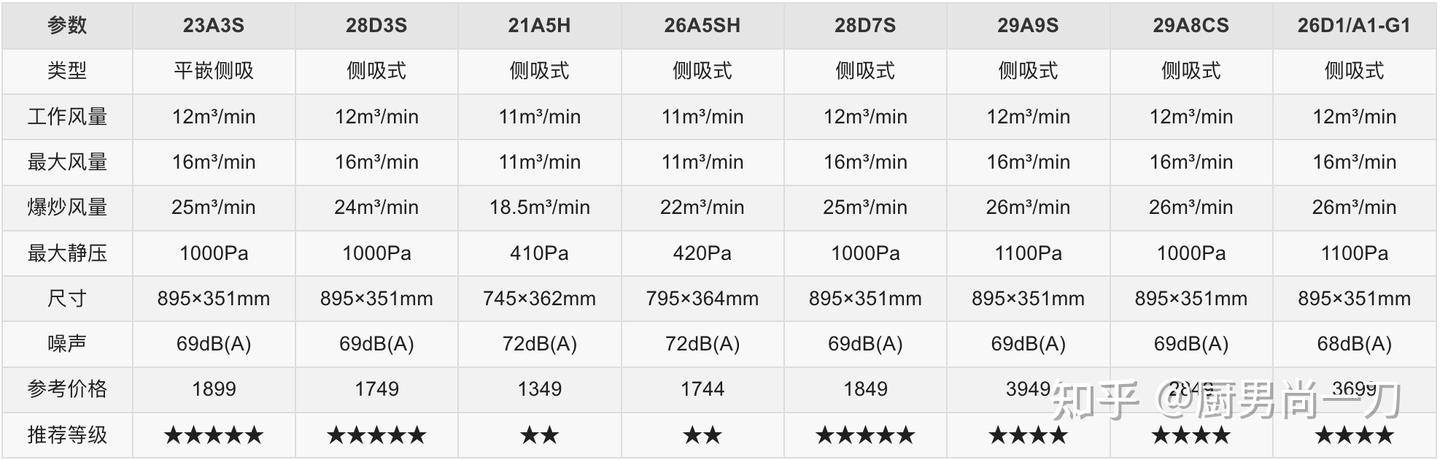 四、抽油烟机推荐抄作业如果你不想看第二章的干货,又不想看第三章的详细分析,而且盲目相信厨男,那我在这里给出几个可以闭眼选不踩坑的选择。