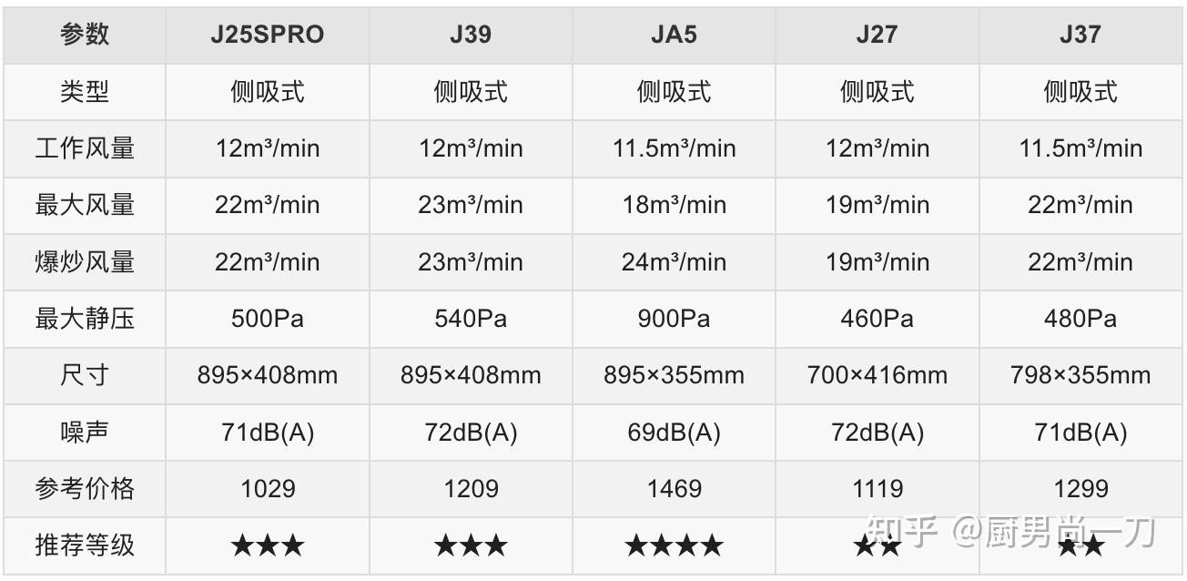 目前销量比较高的侧吸式主要有:J25SPRO、J39、JA5、J27、J37。