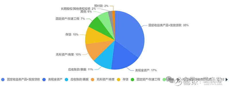 经久发展,美的账面资产已经扩张至近5000亿了,其中净资产1600亿,经营性负债2200亿。总资产类现金占比17%,其他固收类产品以及通过财务公司对外发放的贷款总和占比35%,将其视为经营类资产的话合计超过50%。其他占比较大的商誉、存货也超过10%。