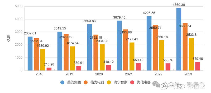 国内的四个家电巨头总资产对比来看,美的在2017年首次超过格力后,不断扩大领先优势,最新的总资产已经超过格力1200亿了。在两个空调巨头大打价格战的情形下,海尔借机猥琐发育,最新掌握的资产也超过了2500亿,而第四的海信就已经完全跟不上前三节奏了。在国内制造业卷得如此发麻地步,胜者为王时代应该还没有那么快到来。维持这个竞争态势,侵占小公司的市场份额同时不断为消费者提供有创造力的产品。