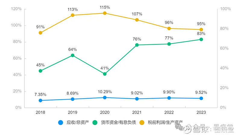美的的应收款项占比总资产总体稳定,保持在10%之下,不存在大额应收款侵蚀资产质量的问题。偿债能力方面如前文所提,以美的目前的资产和资源,即使现金对有息债务的覆盖率达不到100%也没有任何风险。税前利润与生产资产的比值处于较高位置,一度超过100%,意味着公司用1块钱的资产可以创造出1块钱的税前利润,只是由于目前市场蛋糕就这么大,公司不具备将经营所得的现金全部投入再生产,只能投资于理财产品/大额存单,因为市场消化不了过多的产能。