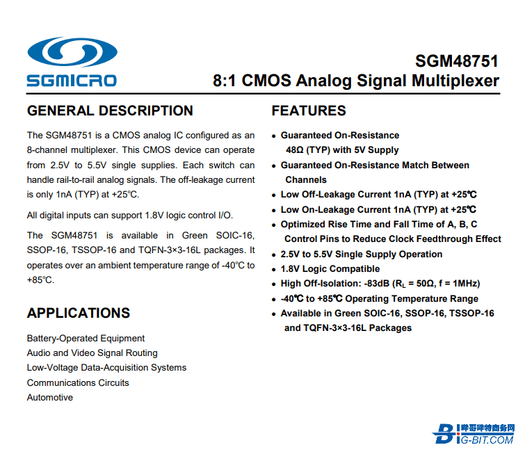 圣邦(SGMICRO)SGM48751系列——模拟信号多路复用器。