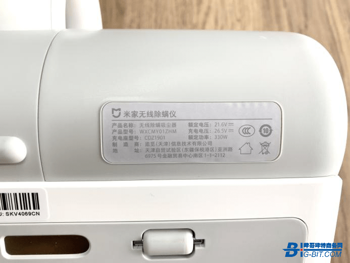 在整机曲面处印有“Cyclonic Separator”,标识着该款米家无线除螨仪搭载多锥旋风分离系统,能够有效将大颗粒脏物甩入尘杯底部,实现尘气分离,保持风道不堵塞。