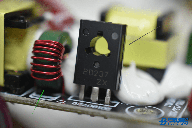 黑色箭头(右):三极管BD237,用于中功率电路及开关电路。