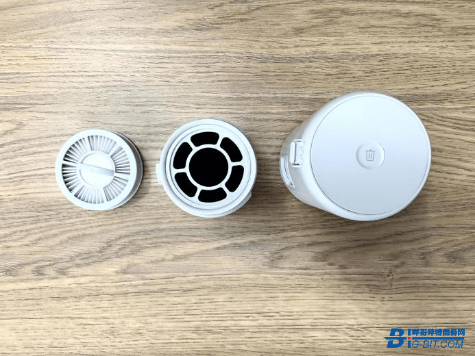 HEPA过滤组件,集尘杯通过按压中间按钮可取出。