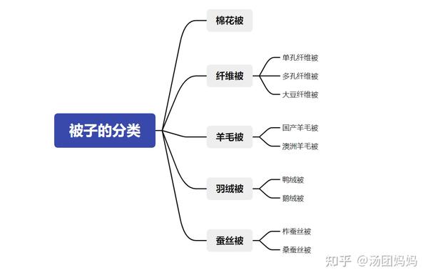 一、被子的分类根据被子的原料及构成不同,常见热销被主要分为棉花被、纤维被、羊毛被、蚕丝被和羽绒被五类。