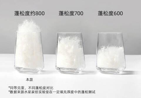 它的填充物是95%的鹅绒,还是匈牙利进口的白鹅绒,特别的保暖,蓬松度也很高,与其他对比图如下,可以看出它真的是又蓬松又软乎,在睡的过程中怎么折腾都不会跑绒。