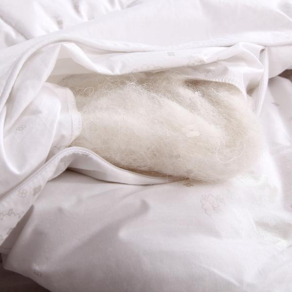 羊毛纤维弹性卷曲,可以吸除相当于本身重量1/3的湿气,舒适保暖。羊毛还具有很好的悬垂性,因此贴身性较好,尤其是比其他种类的被子会不易吸附灰尘,耐火性较好。