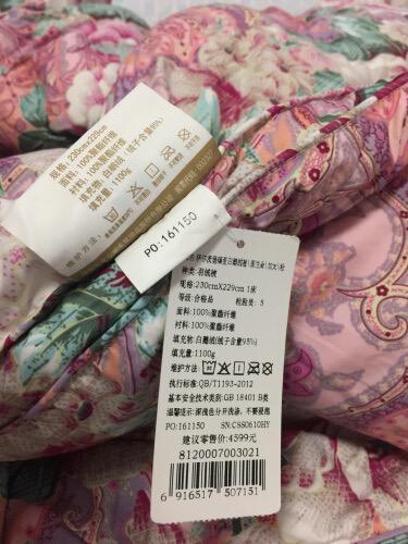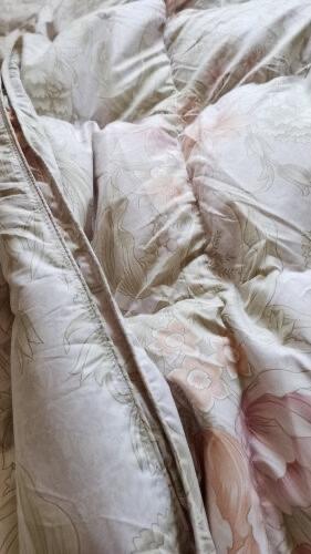 它内置是95%的白鹅绒,不会有异味,特别的轻盈,就是那种贴在你身上而不是盖在你身上的感觉,而且还很饱满,整条被子就是很蓬松的状态,怎么盖也不会扁下去,手感非常的棒,不愧是老牌子富安娜。