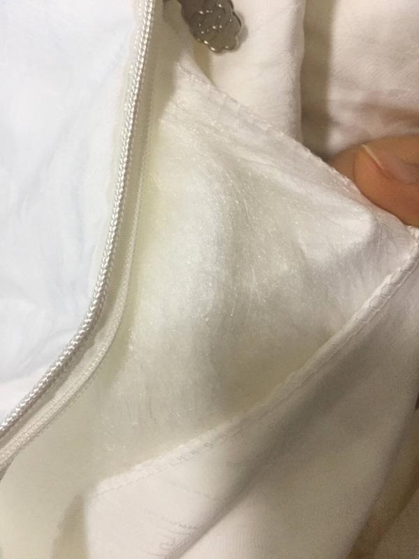 看内部真的能看到拉长丝的蚕丝,厚薄均匀,特别的细致。