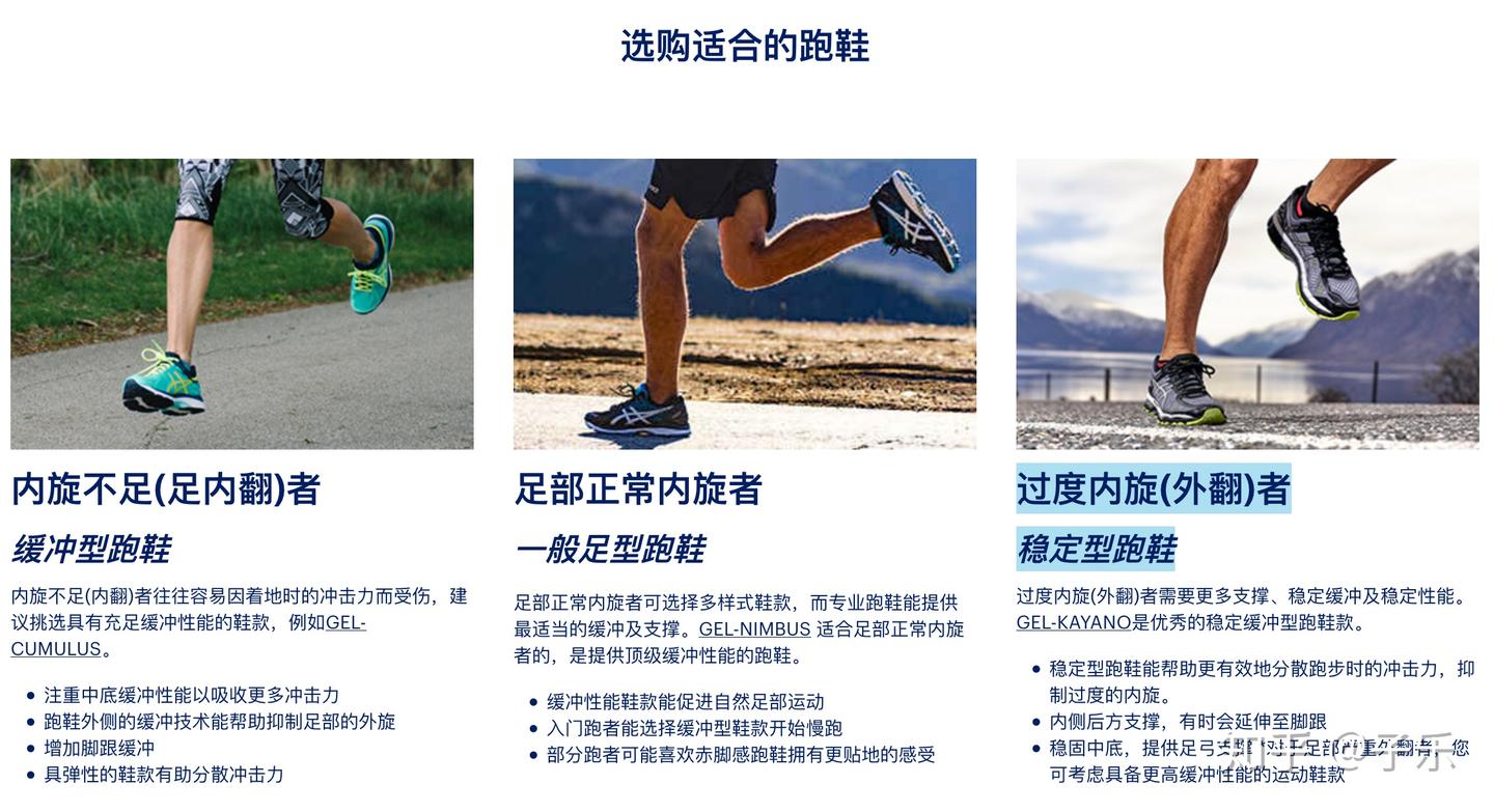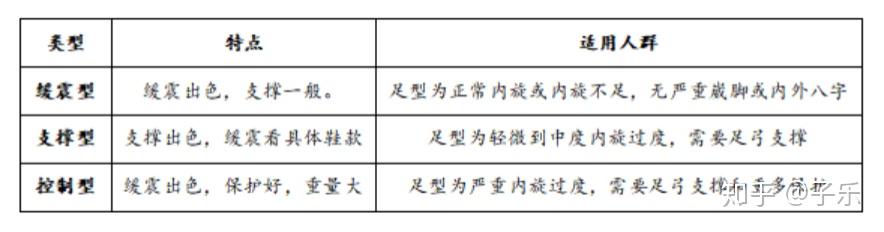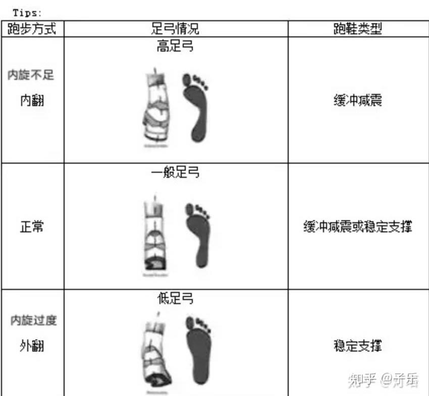 看完上面的,基本了解自己的足弓、内旋的情况,下面根据足弓、内旋对选择跑鞋的总结归纳如下图: