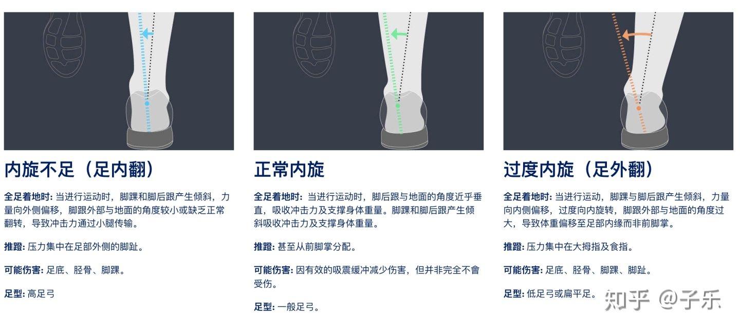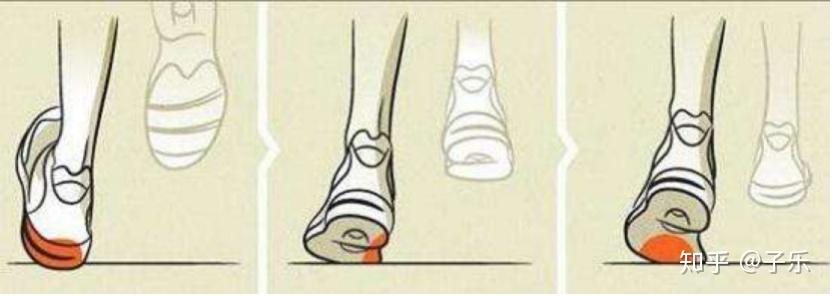 正常内旋内旋不足(足内翻):因在落地及离地过程中,由于足弓过高,脚踝和后跟产生倾斜,力量也会往外侧偏移,导致落地和离地都是鞋头和鞋跟外侧着地,发力的部位也就集中在脚跟和脚外侧了。