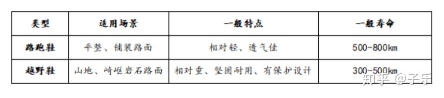 跑鞋也可以按照跑步场景分类:跑鞋、越野跑鞋,对应场景和特点如下: