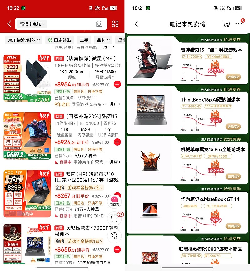 更何况,以京东为首的电商平台已经上线了最新的国补政策,其中笔记本电脑品类的最高补贴比例为20%,单件产品的补贴上限为2000元。