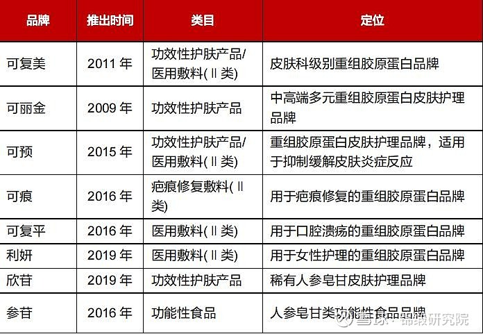 2、巨子生物:提高重组胶原表达率,实现重组胶原从实验室到量产工厂的迁移,通过打造医用敷料、功能护肤品等终端产品,来进行重组胶原的市场教育。
