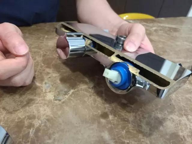 因为如果能够把主体切开,首先切开后切口比较均匀,从切面就知道铜的厚度是否均匀足够厚,颜色是否纯正。质量差的全铜水龙头切口容易崩裂。