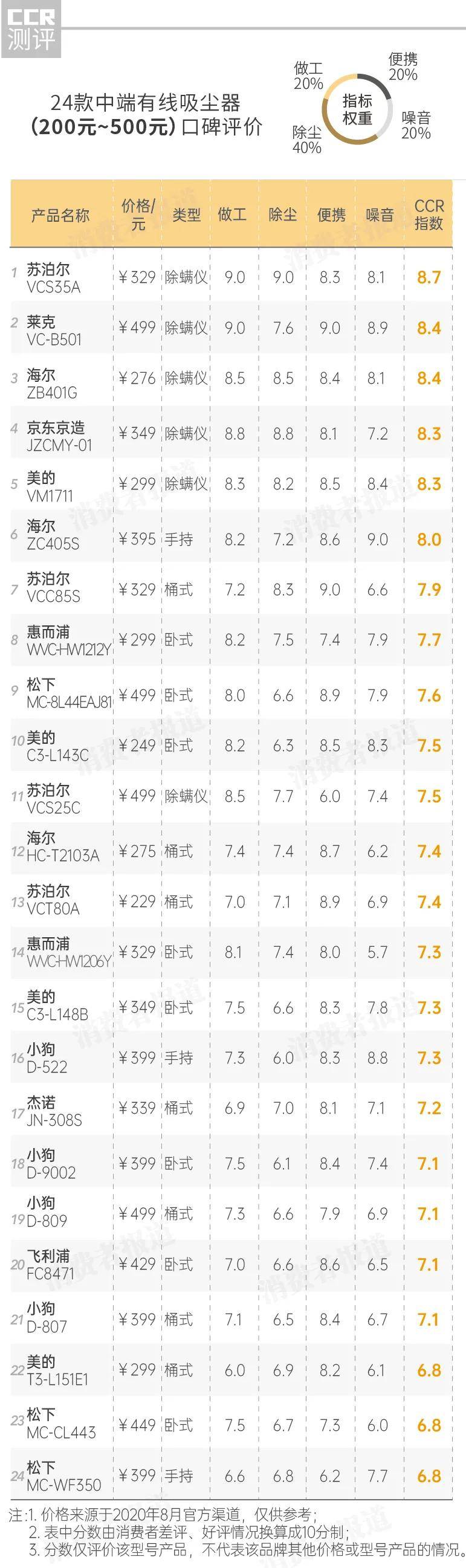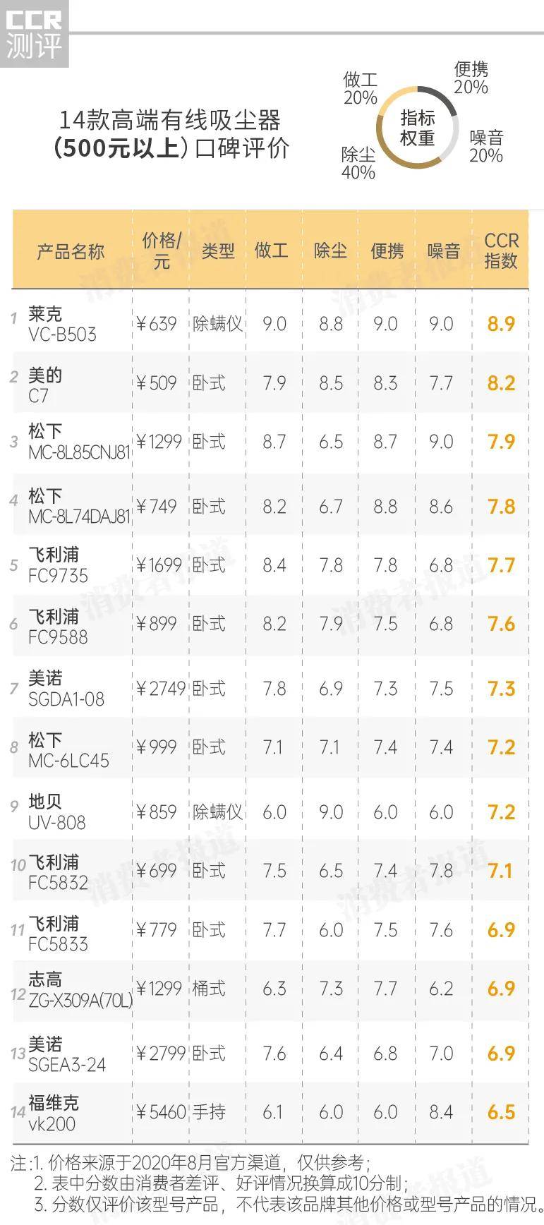 美诺 SGEA3-24和福维克 vk200表现较一般,CCR评分垫底,分别为6.9分和6.5分。