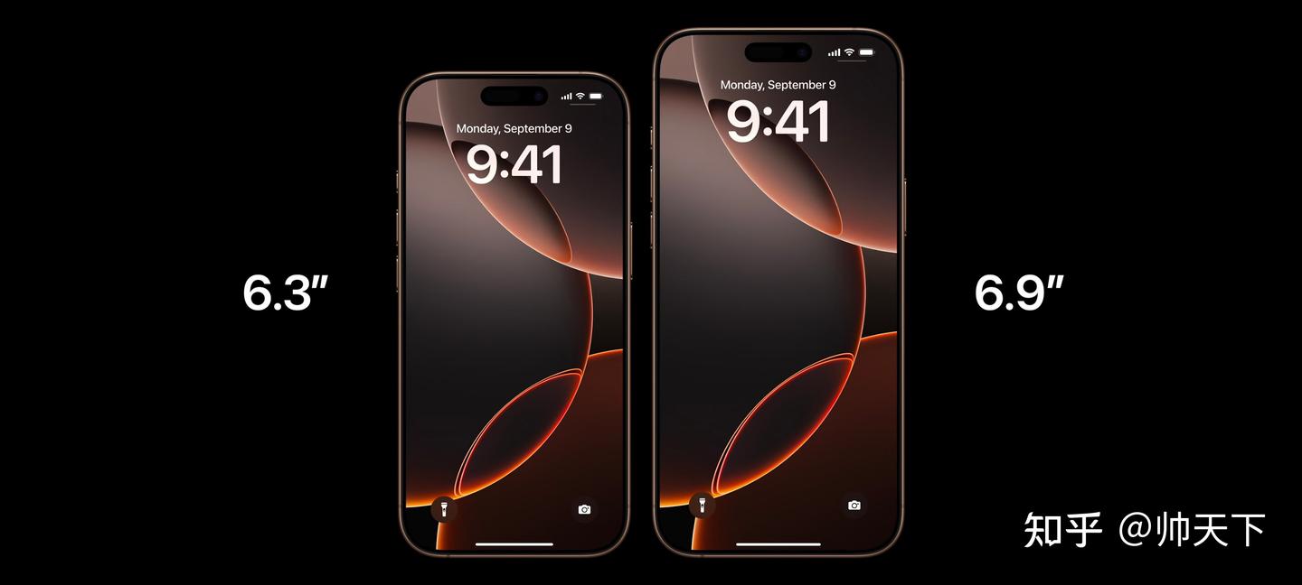 屏幕上,Phone16 Pro、16 Pro Max的尺寸扩大至6.3寸和6.9寸,在屏幕的极窄边框上,超越了安卓这边。