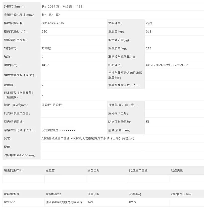 迟来跨界:力刻 戈壁ADV250外观上新申报的戈壁ADV250基本和摩博会上参展的戈壁ADV150相同,只不过申报的250版本原厂自带护杠,前减震为金色。外观的原创度也非常高,说到外观也不得不说力刻的车型在做工细节上的表现也同样很出色。前后轮胎分别搭载14寸和13寸的辐条轮毂,全彩仪表、倒立式前减、四活塞卡钳、双通道ABS、TCS牵引力控制等均有搭载。