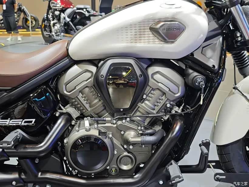 CU新车:无极 CU625作为CU系列的第三款车型,不管是设计的成熟度还是美观度都有了长足的进步。CU625并没有太多浮夸的设计,整体给人一种相对比较稳重的感觉。在整车细节上这一台车也比以往两款车型更为精致,不管是大灯、油箱以及两侧水箱护罩等都有着更为协调的处理,而且排量更大的V缸引擎也使得整车变得更为饱满。单边双出的排气管以及带靠背的座椅都有着不错的质感。
