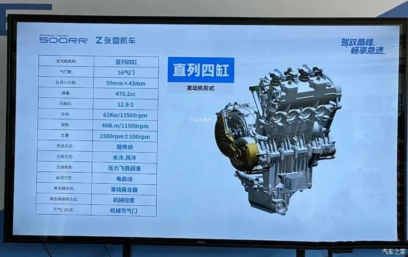 动力上搭载了一台直列四缸水冷引擎,实际排量470.2cc,压缩比高达12.9:1,最大功率62kW/13500rpm,最大扭矩46Nm/11500rpm。可以看出在性能的追求上张雪依旧有着执念,这台引擎最高转速能够达到15000rpm左右。刹车为自家TAISKO减震则由渝安提供,其他配置上我们依旧不做详细介绍等待官方的最终公布。