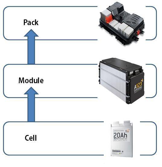 正如前面的图示:电芯(Cell)----> 模组(Module)----> 包(Pack)。