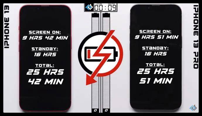 也有多家媒体针对这两款机型的续航时间进行了测试,最终得出的结果都是iPhone 13 Pro 续航时间要更长一些。