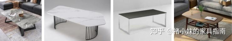 玻璃茶几:清新透明,价格便宜,容易清理,但易碎,不好搭配,钢化玻璃的话会好很多。大理石茶几:纹理清晰、时尚感强,也很容易打理;但过于笨重,还比较脆,磕碰容易损坏,汤汁没及时请理的话还容易渗透。岩板茶几:拥有出色的坚硬程度和稳定性,逐渐代替大理石成为流行材质。木质茶几:当下非常流行的材质,安全环保,使用寿命长,跟不同的家装风格匹配度也高。颗粒板茶几:价格比较低,且能制作各种造型,性价比高,200内就能买到小茶几。选其他重点1、推荐圆角茶几:家里有孩子的买圆角茶几。家里是直角的需要给他包住,不然孩子撞到就划不来了。2、注意桌脚稳定性/承重性:部分茶几为了美观,会将桌脚设计的非常纤细,跟地面接触面积少,遇重容易受力不足,发生侧翻。3、底部跟地面留有一定距离:茶几底部是一个容易藏污纳垢的地方,选购时注意看底部架空空间是否够扫地机器人或洗地机放进去。四、茶几品牌推荐品牌1、全友家居全友家居是老品牌了,推荐双圆形组合装茶几,不用担心尖角磕碰,跟不同家装风格和沙发之间很百搭。