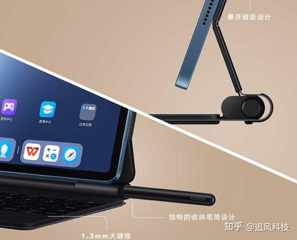 荣耀这次,创新的引入了一个悬浮键盘,这个键盘的概念最早是苹果带来的,用于ipad pro上,为去年3月份推出,售价2k+,也是ipad上最具创造力的一个配件。