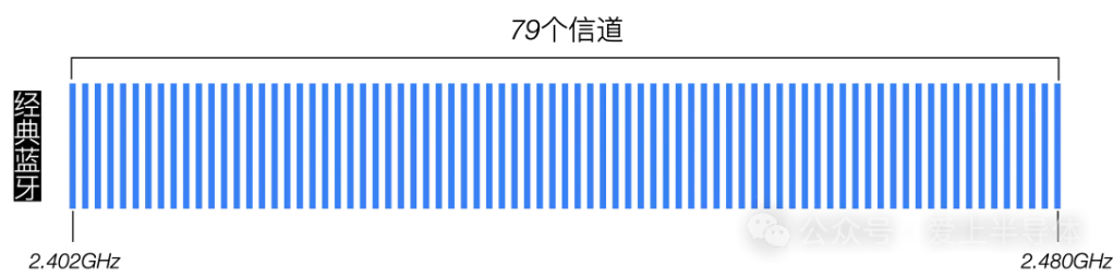 经典蓝牙的信道数量是79个,其范围也是从2.402GHZ-2.480Ghz,但是每一个信道的带宽只有1MHz