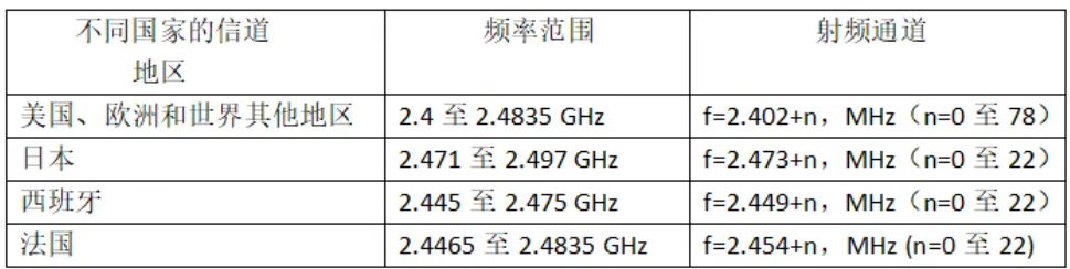 2 蓝牙工作原理 2.1 信道蓝牙技术采用多信道通讯,工作于ISM频段,通常是在2.402GHz至2.48GHz之间