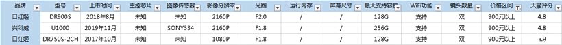 主控芯片跟图像传感器不详摄像像素:前镜头800W、后镜头200W主镜头光圈:F2.0影像分辨率:2160P最大支持内存:128G安装方式:3M胶24小时停车监控:降压线口红姬DR900S这款是支持前后双录,前后镜头都是采用3M胶安装,机器是没有屏幕的。亮点是支持远程监控,视频可以传到云端,云服务功能比较先进,但需要自配车载移动WIFI,购买云服务功能,才能使用。而安卓手机并不能很方便的获取到BlackVue的手机APP, 国内大部分的平台都没有该APP, 需要翻墙才可以,APP比较麻烦。兴科威 U1000行车记录仪,推荐指数:★★★★☆