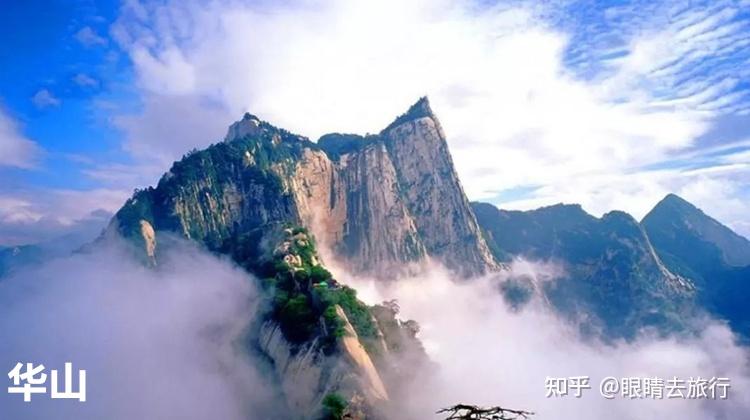 华山:五岳之一,有东,西,南,北,中五峰,因山上气候多变,形成云华山、雨华山、雾华山、雪华山,给人以仙境美感。