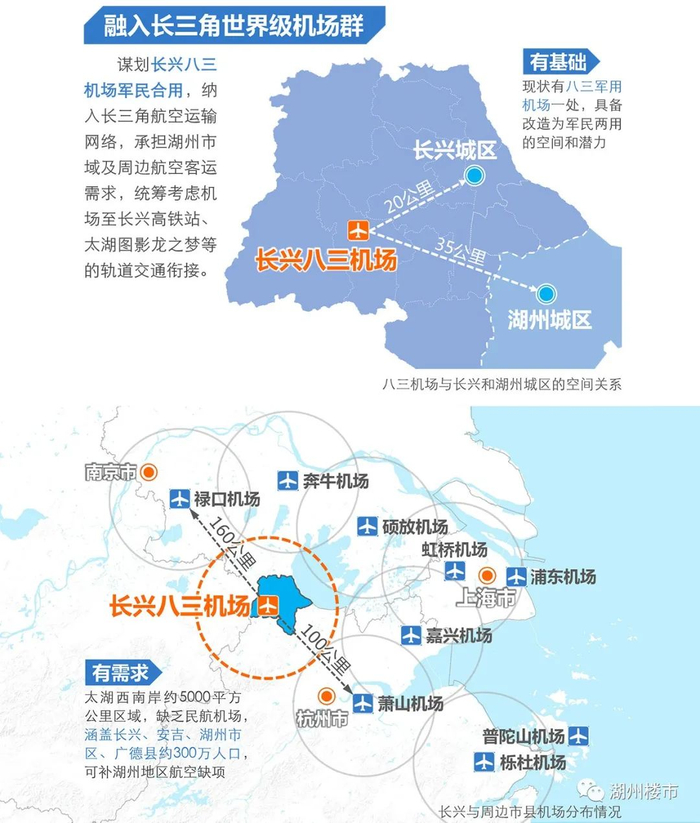 根据《长兴县国土空间总体规划(2020—2035年)》,长兴正在推动八三机场军民合用,加快推动项目落地