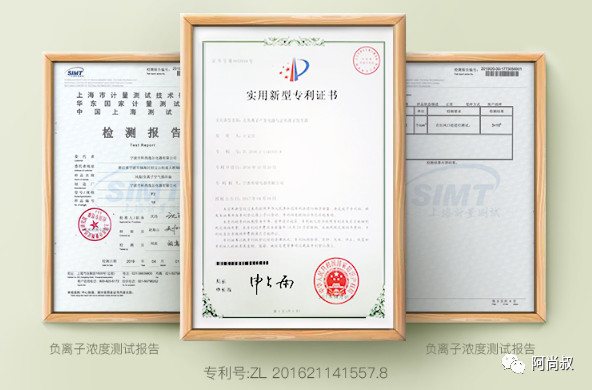 客服说,负离子浓度高于森林瀑布2倍,所以能够高效净化空气的有害物质。科西的还有相关的专利证书。