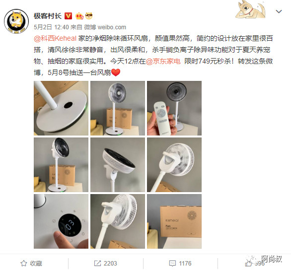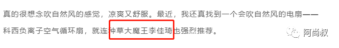 科西令人津津乐道的一点就是,5月份,李佳琦在直播间里推了科西的风扇,当天直接卖爆了。当时,开团的博主都发微博说,因为李佳琦推的太猛了,存货不够,要提前截团。
