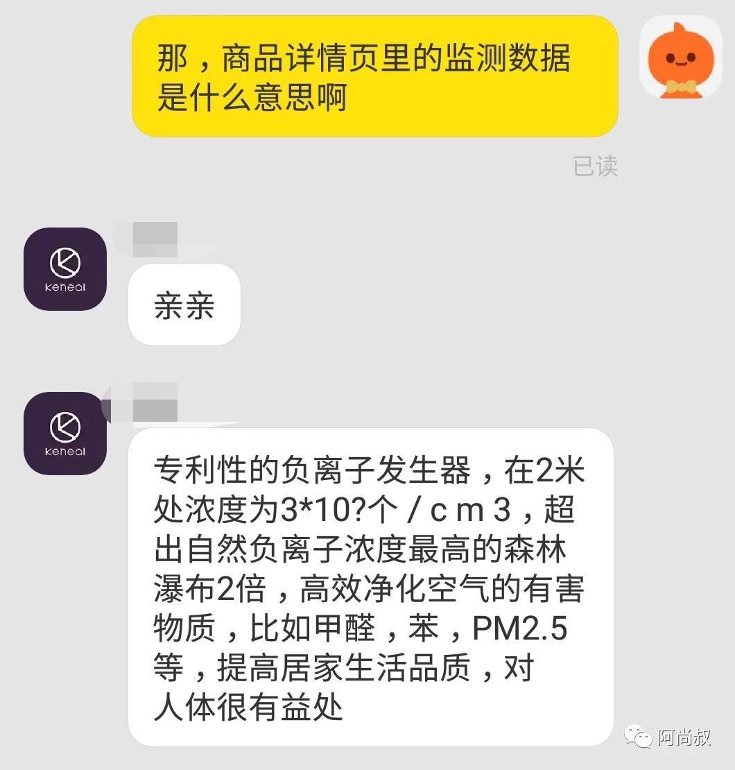 它出示了出风口负离子浓度,我寻思着,这个怎么证明自己具备空气净化功能?去找客服问了下,给我的回答是: