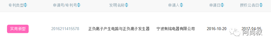 国家知识产权局官网上查了下,科西没有套路,这个专利属于实用新型专利,叫做“正负离子产生电路与正负离子发生器”。