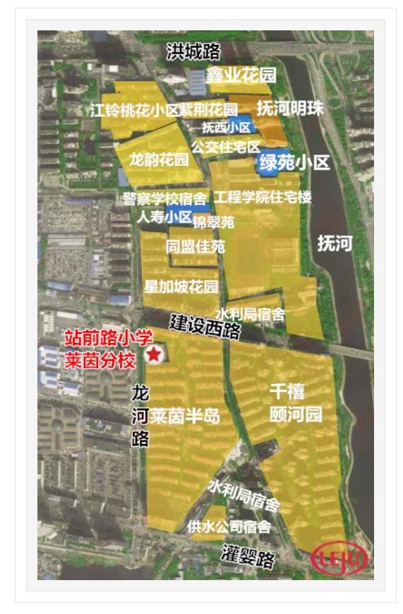 此学区为洪城路以南至灌婴路以北,龙河路以东至抚河以西合围区域。