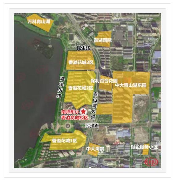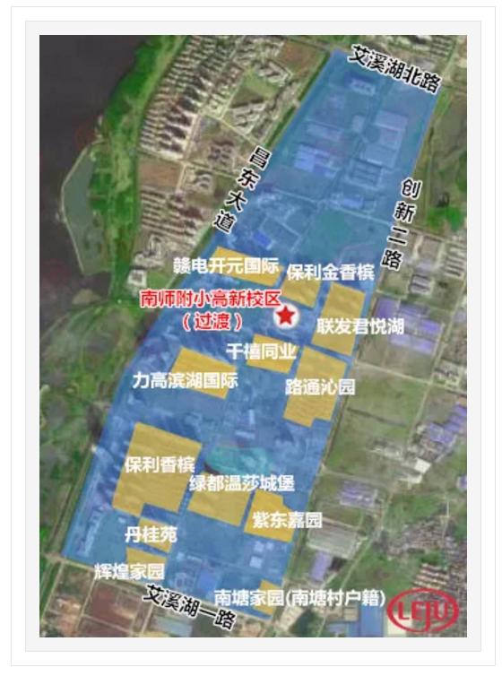 该学区内包括紫东嘉 园、力高滨湖国际、千禧同业、赣电开元、联发君悦湖、辉煌家园、路通沁园、丹桂苑、保利金香槟、科学院宿舍、保利香槟、南塘家园(南塘村户籍)、绿都温莎城堡。