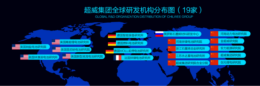 超威在全球拥有19个研发机构、3000多名技术专家,在研发上投入数十亿,并先后建立了国家级企业技术中心、博士后科研工作站、国家CNAS认可实验室、国家环保工程技术中心、省重点企业研究院等领先科技创新平台。