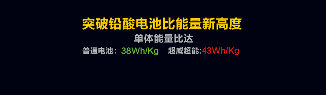 在石墨烯技术的基础上,超威推出了独有的低内阻正极板、高弹纤维隔板和高效强化合金等技术配件。除此之外,超威在铅酸电池领域还有诸多技术性突破,超威超能石墨烯电池更是打破行业技术壁垒,实现单只电池比能量高达43Wh/kg。