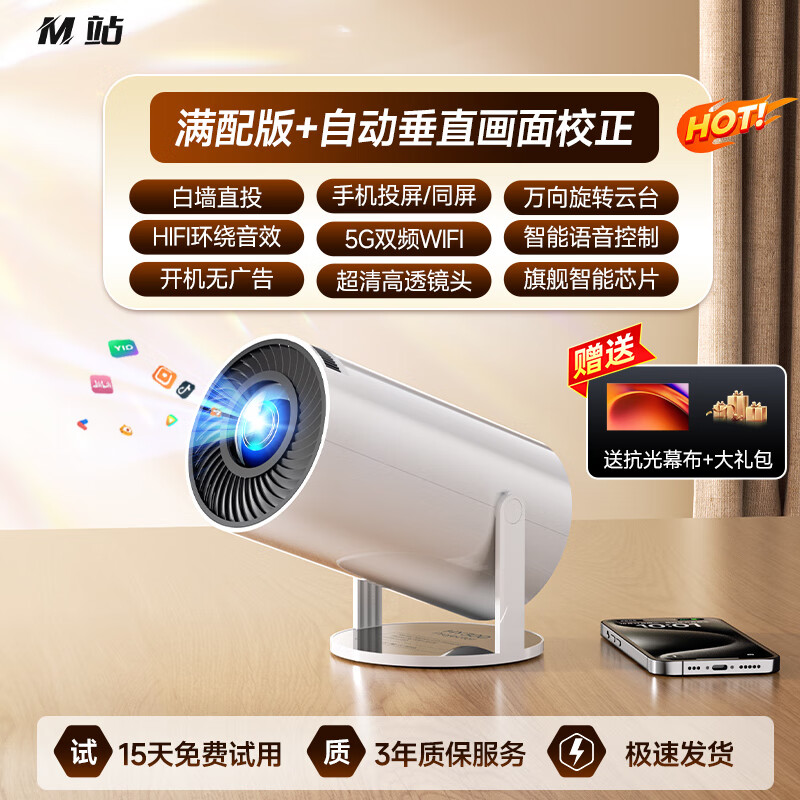 M站2024新款超高清4K投影仪家用一体客厅卧室家庭影院CPY-1白色 旗舰满配-云台投影+大礼包+幕布 ¥209起