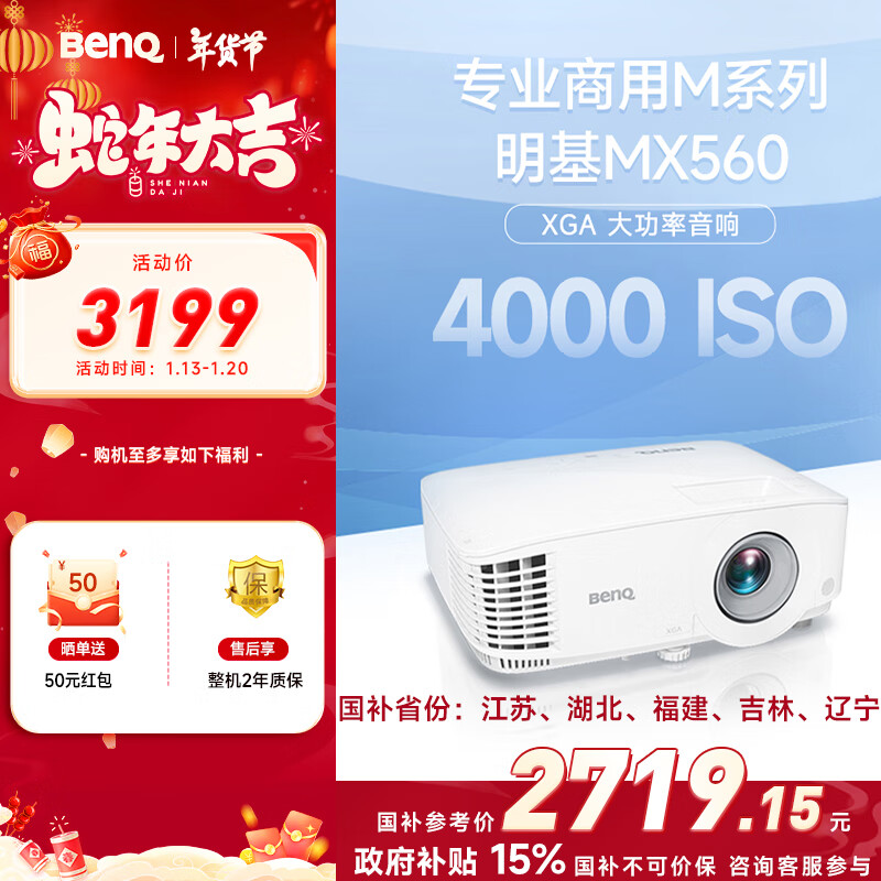 1. 明基MX560护眼投影仪 家用办公 4000流明自动校正