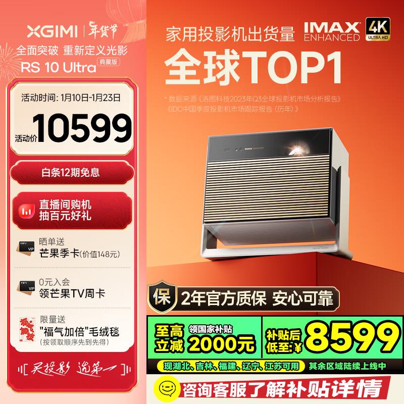 极米(XGIMI)RS 10 Ultra 典藏版 IMAX ENHANCED认证 3500lm 4K智能家用投影丨三色激光 国家补贴2000元 ¥9799起 4. 微影S6投影仪自动对焦,白天高清投影